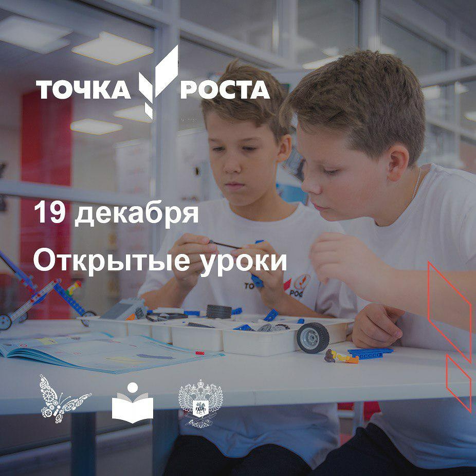 19 декабря в 2049 сельских школах в 50 субъектах Российской Федерации на базе созданных в рамках #нацпроектобразование Центров образования цифрового и гуманитарного профилей «Точка роста» пройдут открытые уроки по «Технологии», «Информатике», «ОБЖ», где учащиеся вместе с наставниками продемонстрируют чему удалось научиться за 3 месяца с момента открытия Центров, расскажут о первых проектах с использованием нового учебного оборудования, а в шахматных гостиных состоятся открытые школьные турниры #нацпроектобразование #точкироста #регион #школа