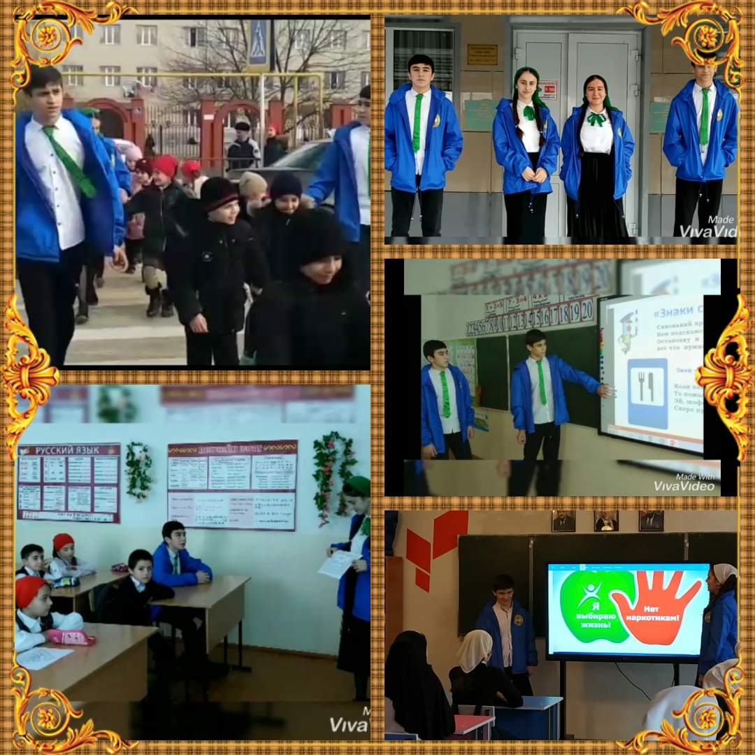 «Юные Кадыровцы »( ЕДЮО) провели акцию «Мы против наркотиков» среди учащихся 6-7 классов. На доступных примерах члены команды ЕДЮО рассказывали о вреде наркомании. Они продемонстрировали негативное влияние употребления наркотических веществ на организм человека чтобы выработать у учащихся навыки убедительного отказа от предложения употребить те или иные психоактивные вещества. Так же Юные Кадыровцы подготовили слайды на которых демонстрировались неблагоприятные последствия, от которых страдают люди, употребляя токсические вещества, табак, алкоголь, наркотики.