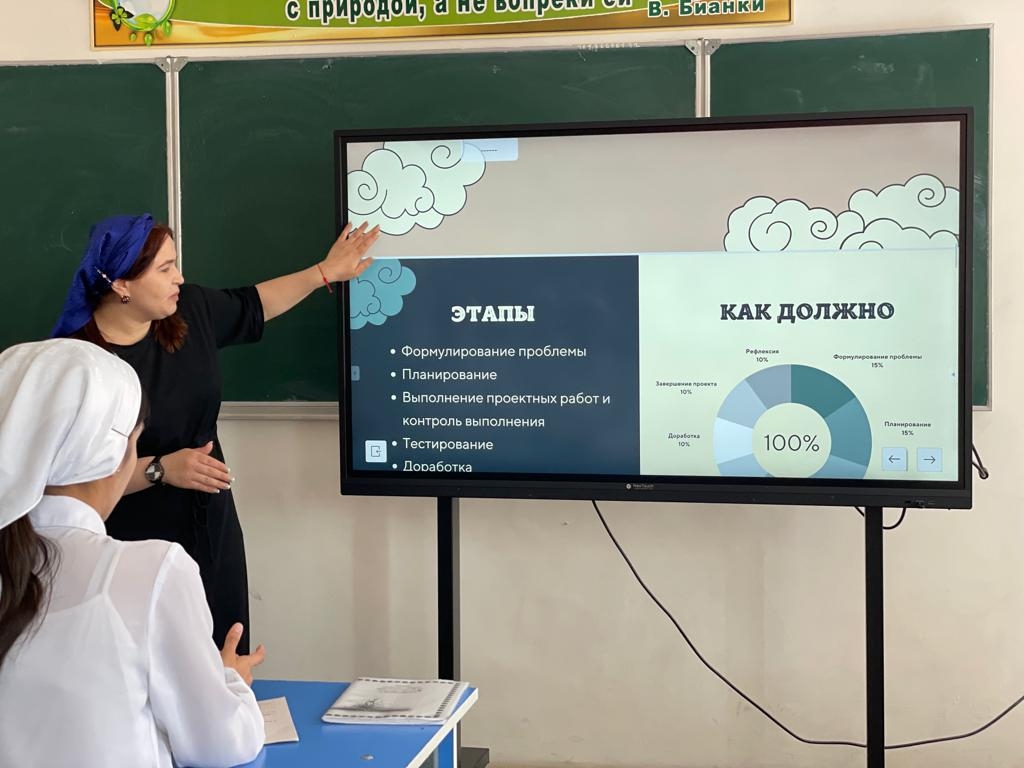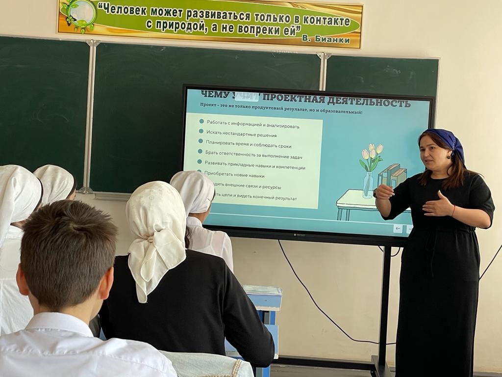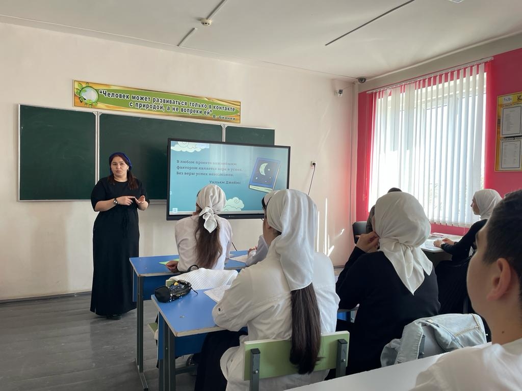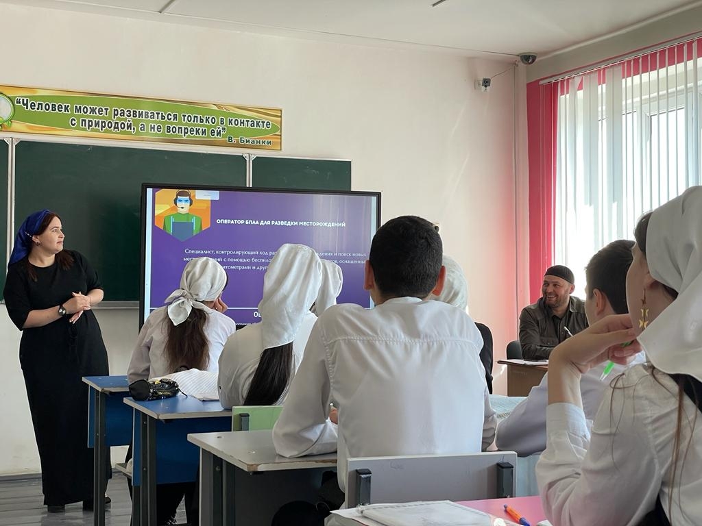 В целях эффективности реализации мероприятий федерального проекта «Современная школа» национального проекта «Образование», согласно приказу Министерства образования и науки Чеченской Республики от 15-го октября 2021 года № 1335-п «Об утверждении Комплексного плана мероприятий» ГБНОУ «РКОиДО «Квант» руководитель центра «Точка роста» на базе МБОУ «Гелдаганская СШ№2» Куготова Арина Мухамедовна провела семинар с обучающимися 9-11 классов на тему: «Workshop-профессии будущего».