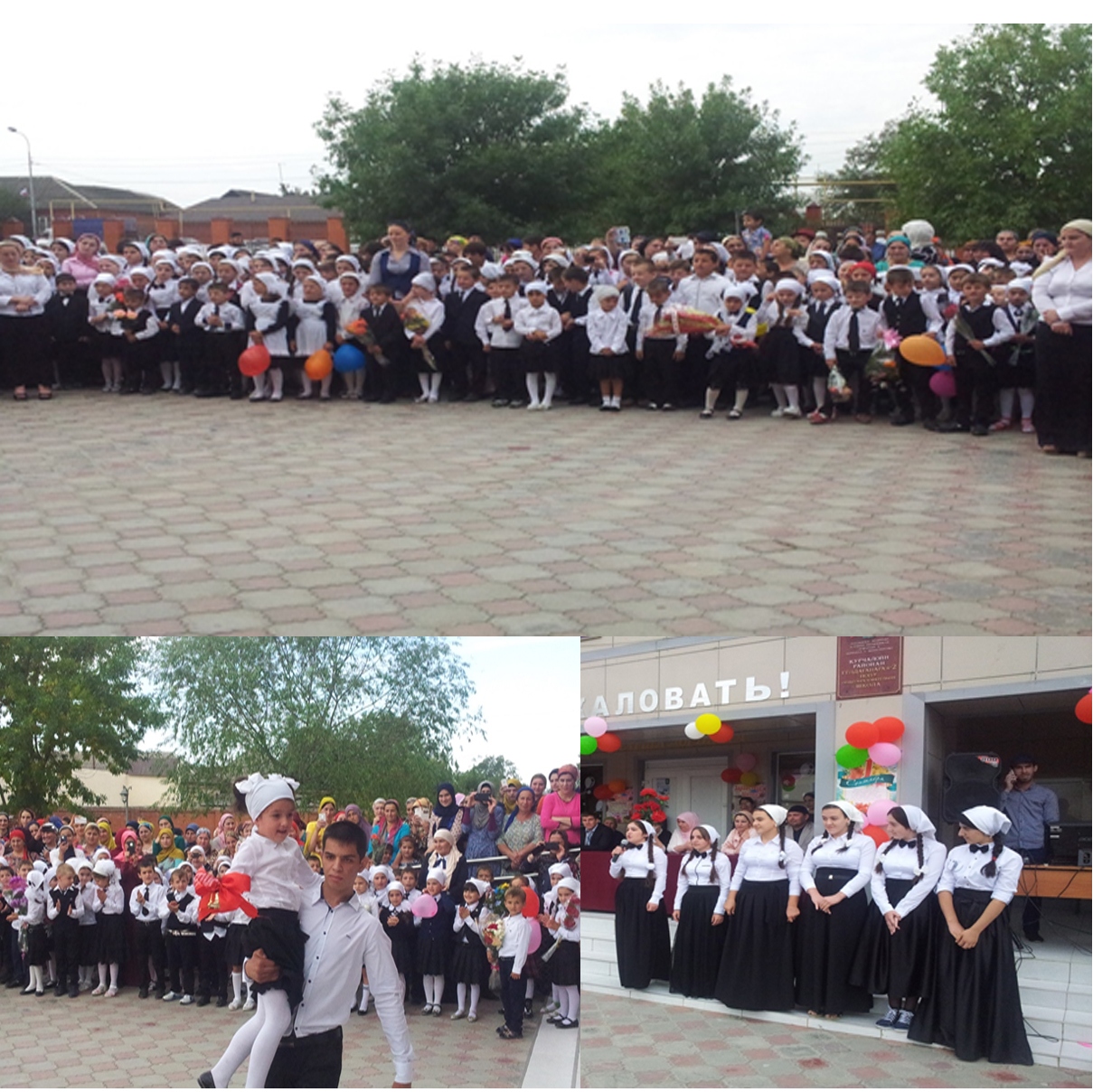 С утра звучала музыка, парадный вход школы был оформлен разноцветными шарами и цветами.